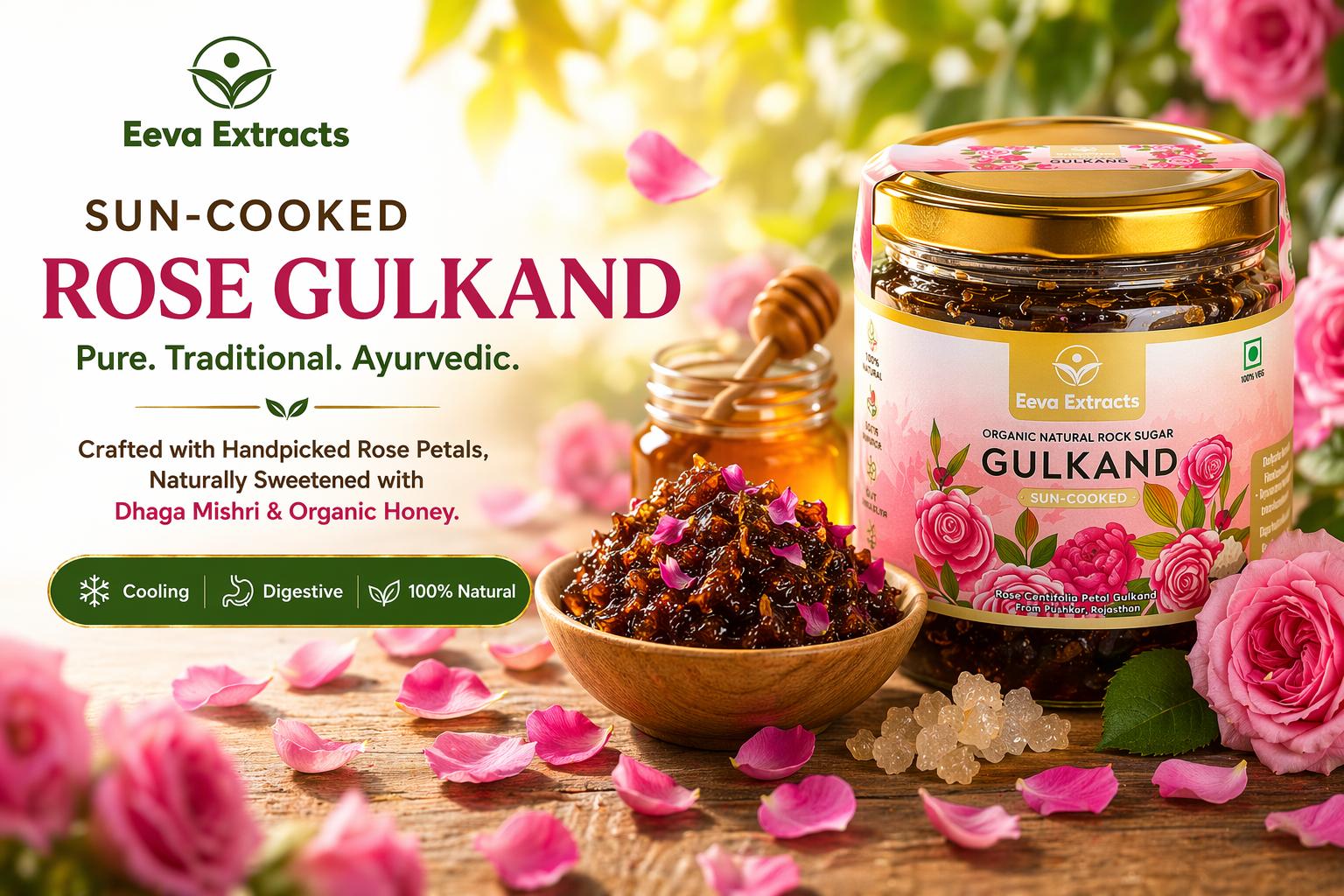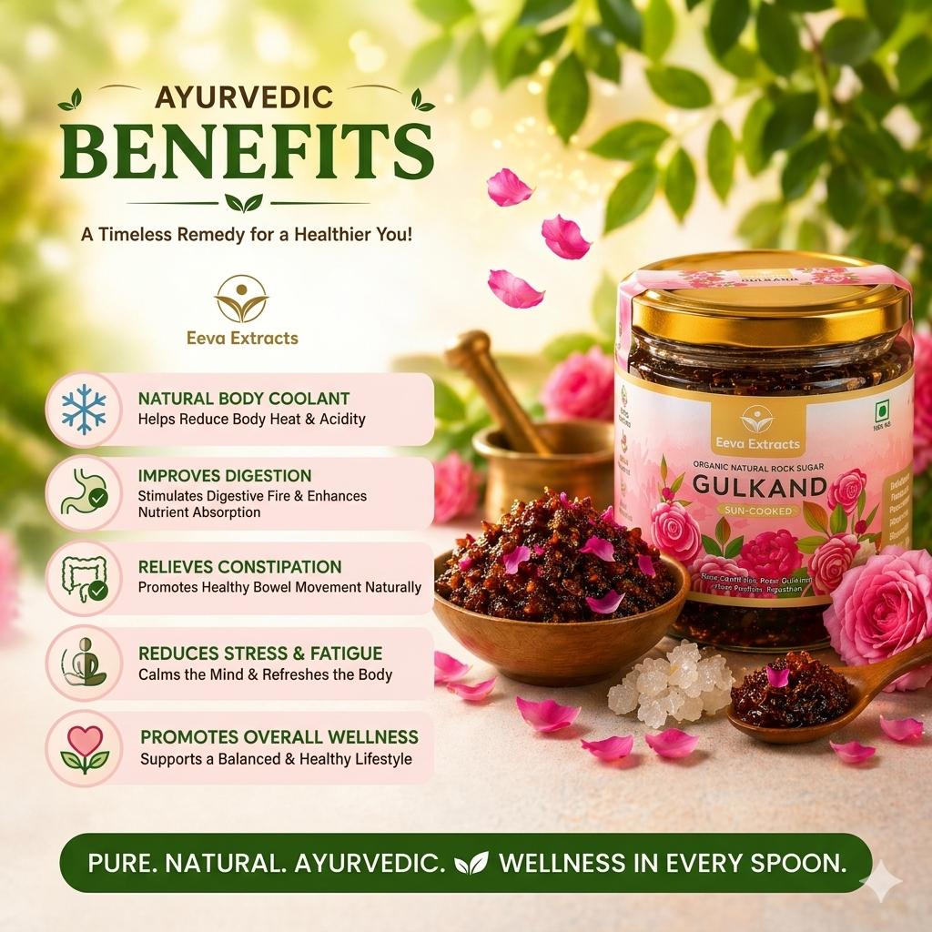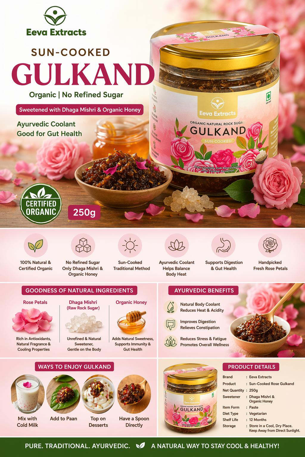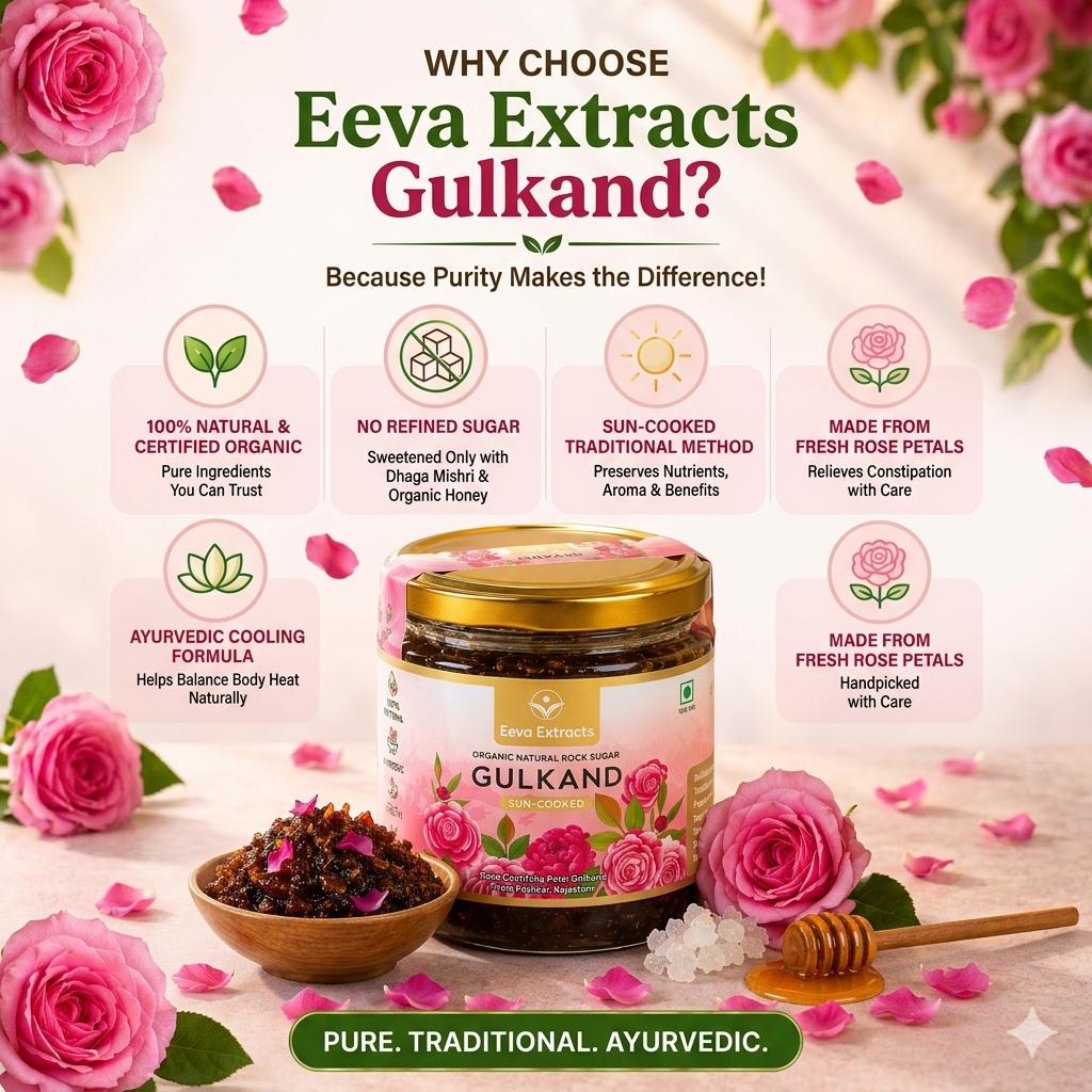 Prepared without refined sugar, this gulkand is sweetened with Dhaga Mishri (raw rock sugar) and pure honey, offering a healthier and more wholesome alternative.