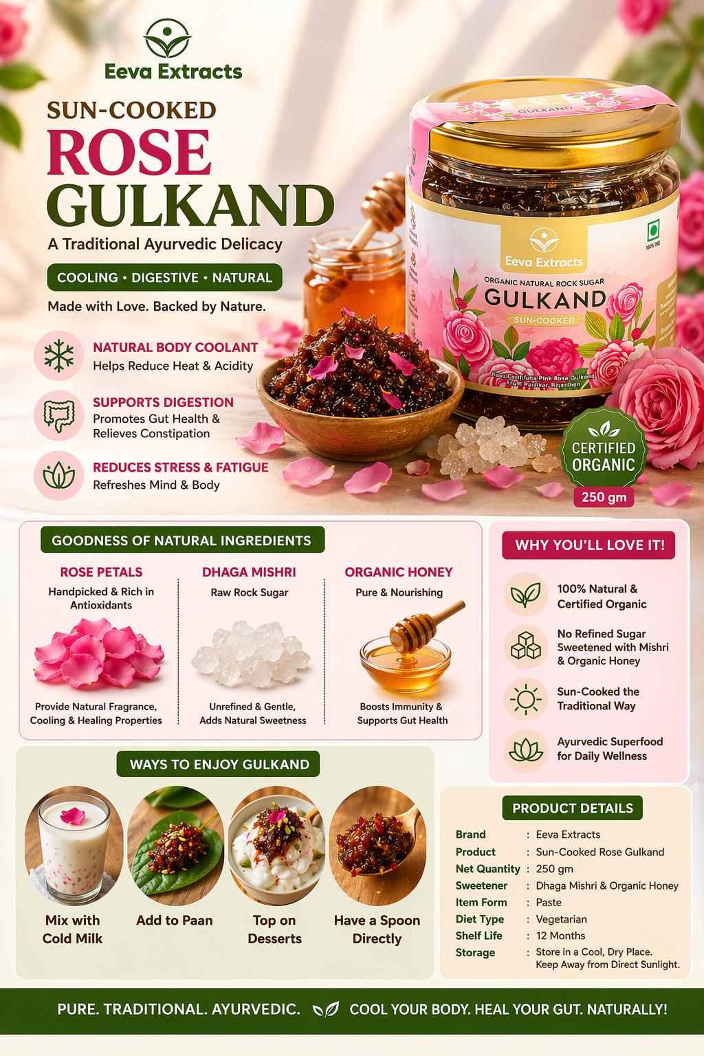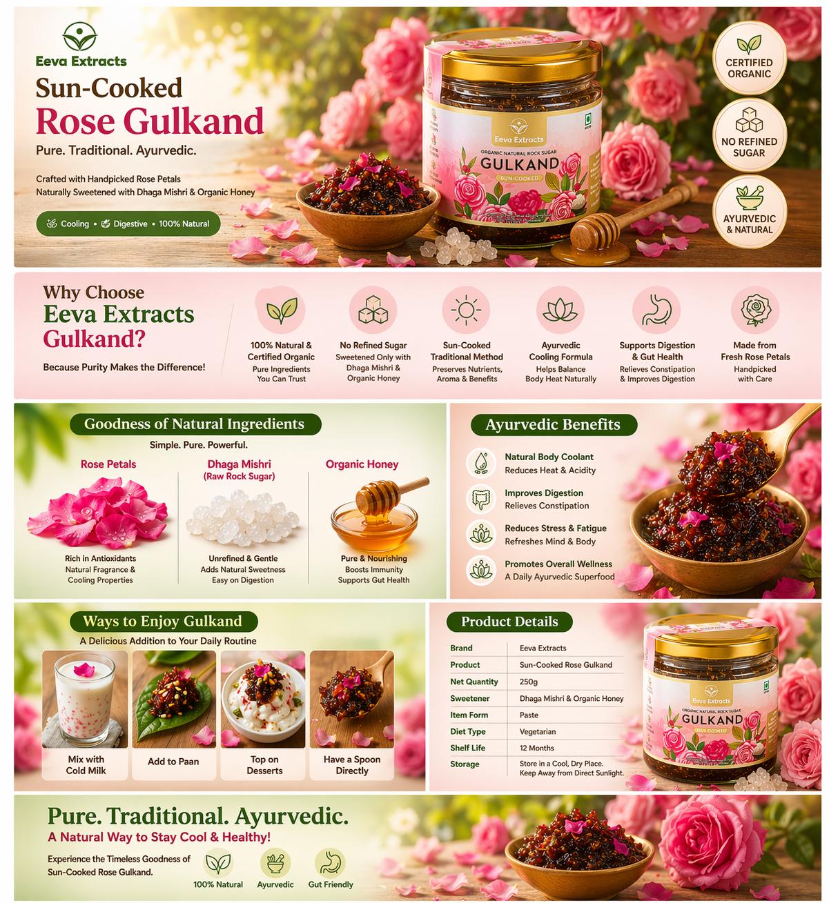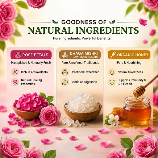 Made from handpicked rose petals using the traditional sun-cooking method, ensuring a rich aroma and authentic taste—completely free from chemicals and preservatives.