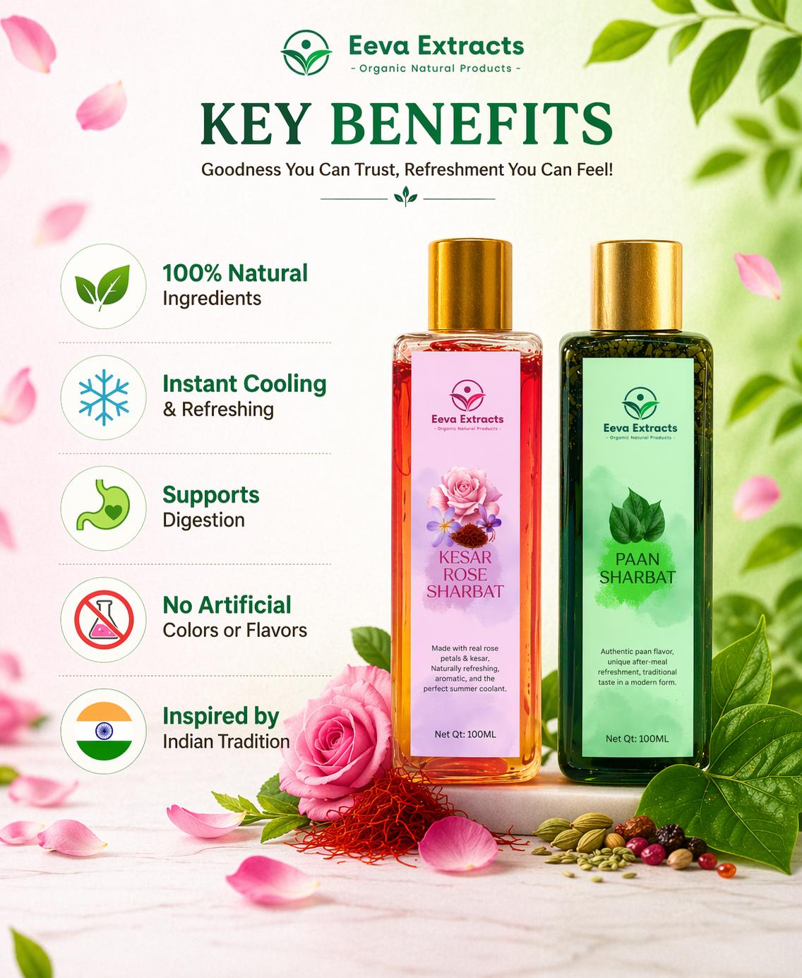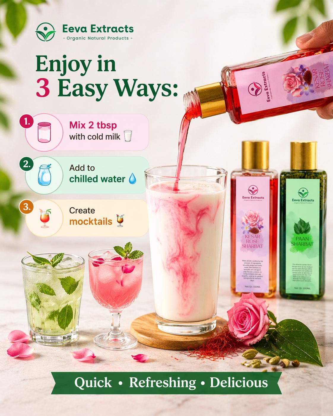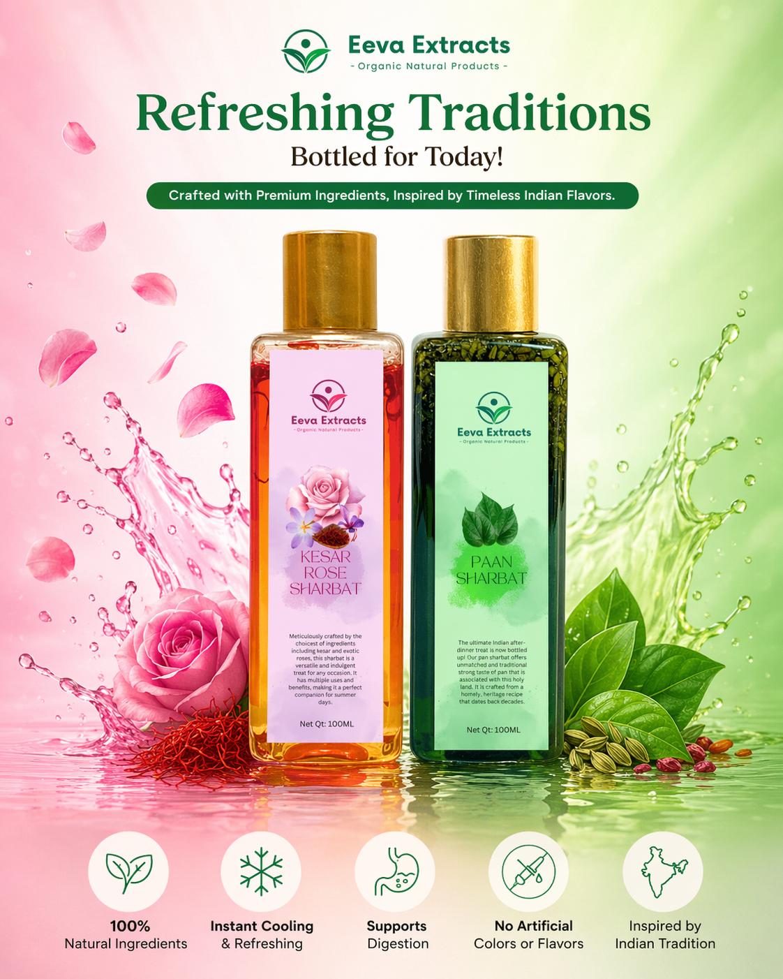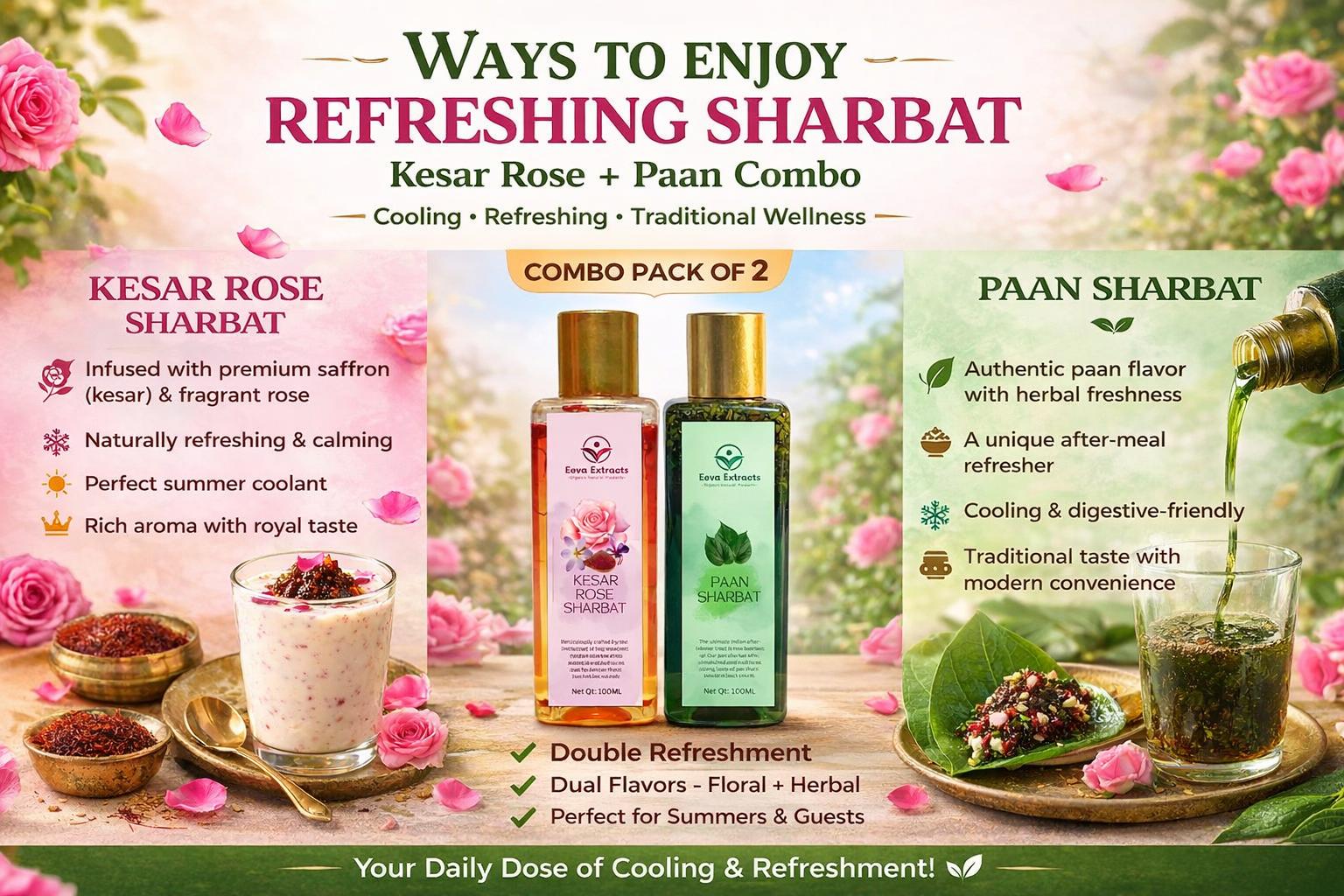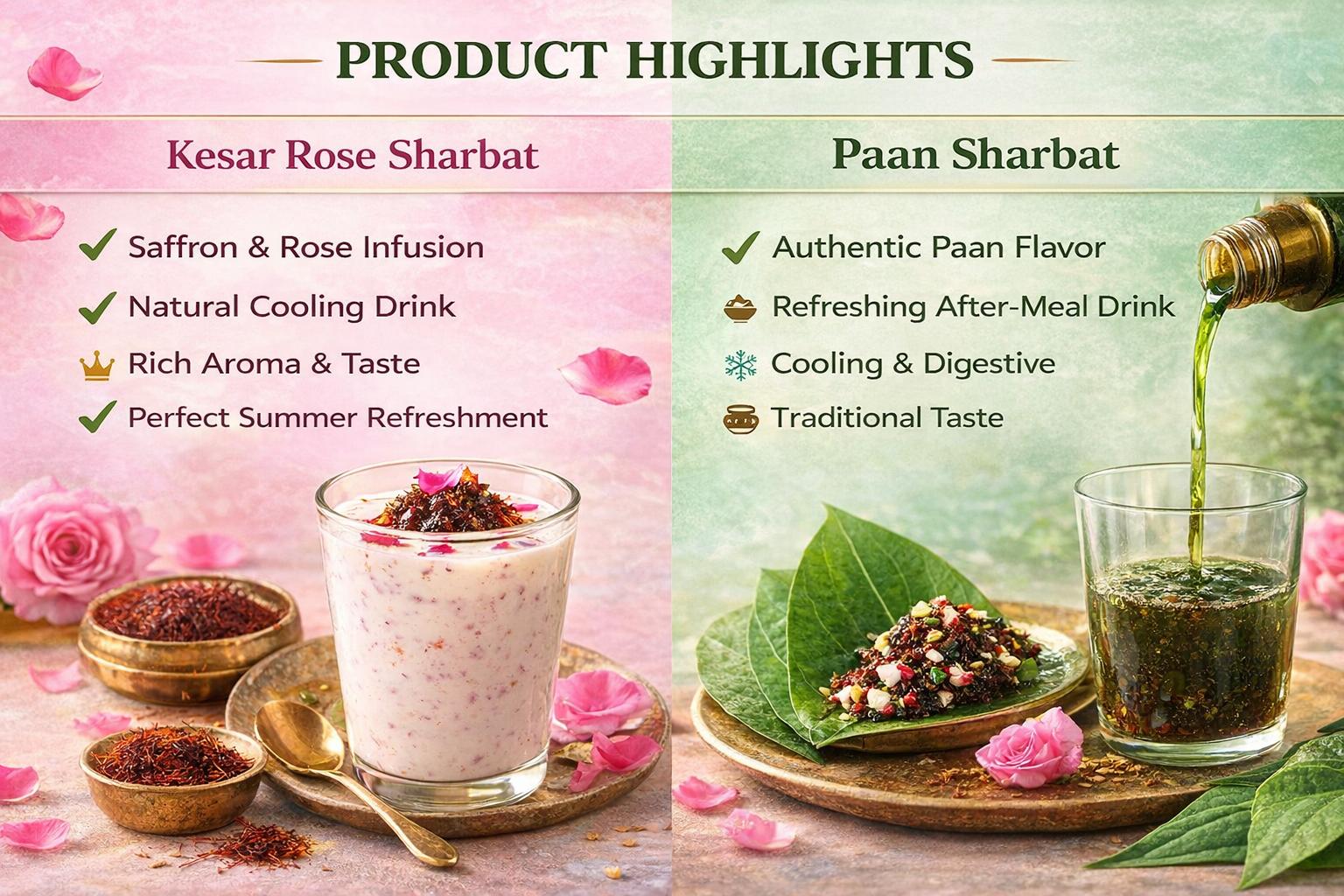 Indulge in the luxurious blend of real saffron (kesar) and pure rose essence, crafted to deliver a rich aroma and a delightfully refreshing taste in every sip.🍃 Traditional Pan Sharbat Experience